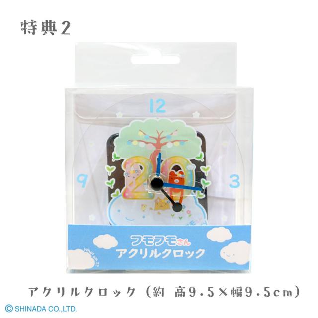 ■ギフトセット 詳細データ 2002年に初めて発見された『フモフモさん』の20周年を記念して、限定ギフトボックスが出来ました♪ 限定ボックスには、今までに発見された10フモ(M)サイズが入ります。 ボックスは、フモフモさんの種類が違う【A】と【B】2種類のセットを用意しました。 更に特典として「ダイカットシール」と「アクリルクロック」が付いてきちゃいます!! |