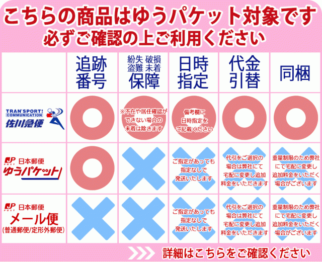 | 配送・支払方法について | 追跡番号付メール便(全国どこでも送料無料/代引不可、同梱不可) ※複数ご注文については宅配に変更になることがあり、金額変更が必要な場合は後ほどショップより確認メールが送信されます。 ※代引き不可。 |