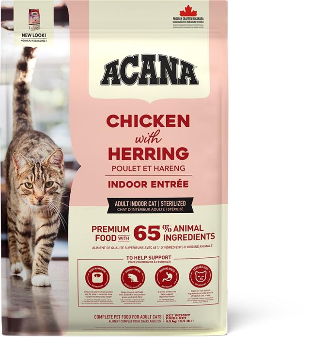 高タンパク質で、室内飼いの成猫に配慮した脂肪・カロリーです。