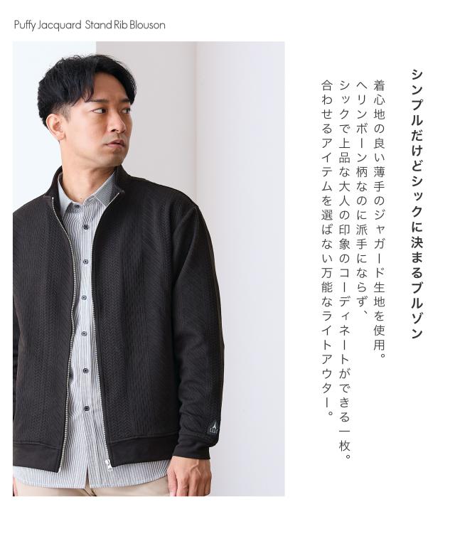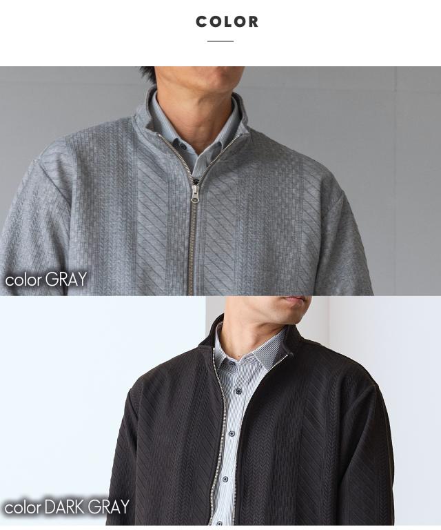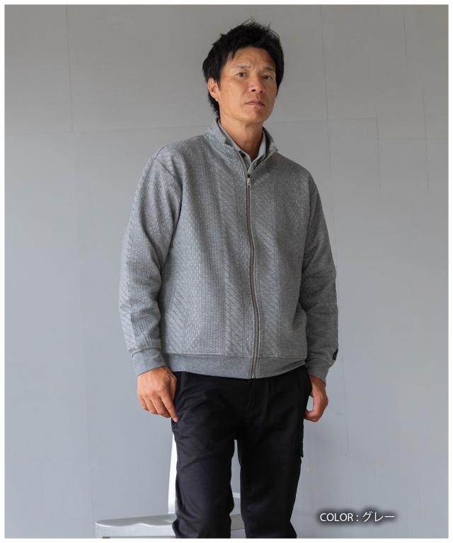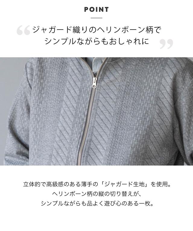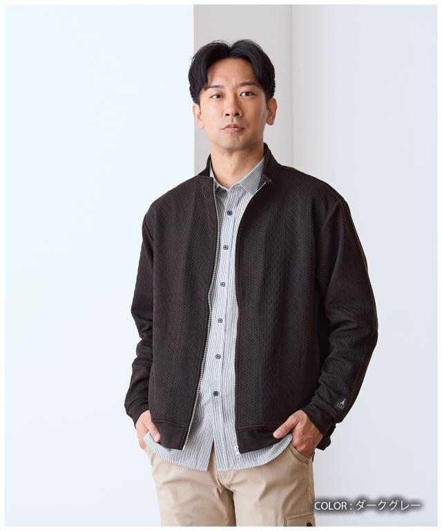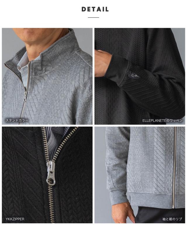 ブルゾン メンズ 薄手 スウェット 長袖 ELLEPLANETE エルプラネット ブランド スタンドカラー ジャガード 切替 ヘリンボーン シンプル ワッペン 無地 上品 ライトアウター アウター ジップハイ カジュアル グレー グダークグレー カーディガン ポケット 30代 40代 秋 冬
