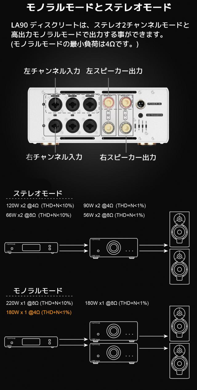 1年保証 Topping LA90 Discrete パワーアンプ バランス アンプ トッピング LA 90 D ディスクリート TRS XLR 入力 モノラル ステレオ ハイレゾ オーディオ 高出力 低歪み 低ノイズ 高音質
