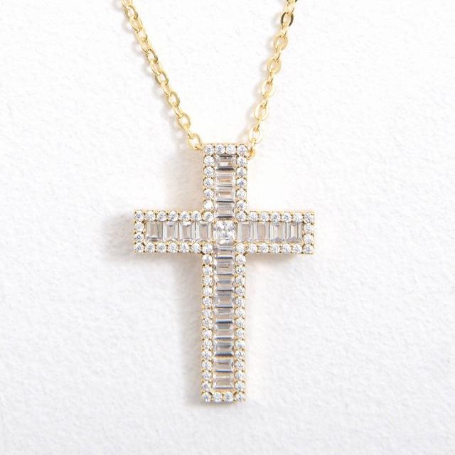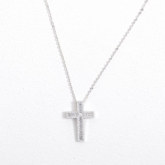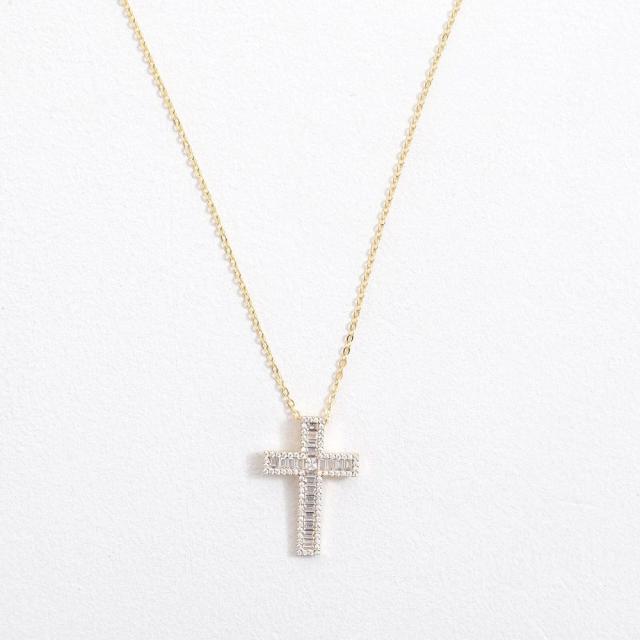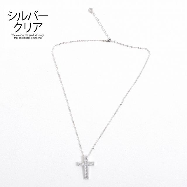 ネックレス メンズ アクセサリー スクウェアクリスタル クロス 十字架 ジルコニア ワンポイント シンプル ユニセックス レディース プレゼント シルバー ゴールド 贈り物 ギフト Brodiaea 春 夏 秋 冬 秋冬 ファッション メンズファッション 即日発送 [BRON-3018]