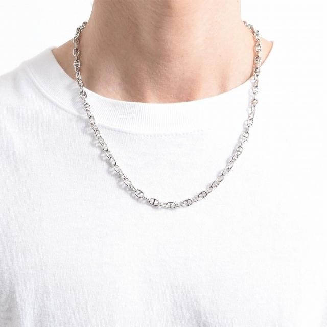 重厚感のある円型チェーンが首元に存在感を醸し出してくれます。