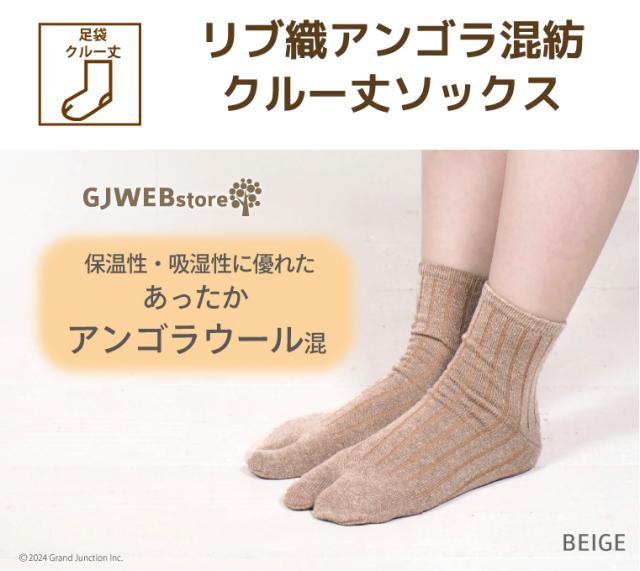 GJwebstore 足袋ソックス 靴下 足袋靴下 レディース クルーソックス リブ アンゴラ ウール 混紡 女性用 吸湿性 保温 日本製 国産 / KGO022