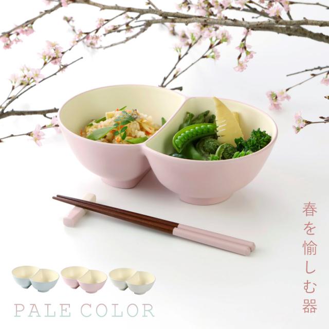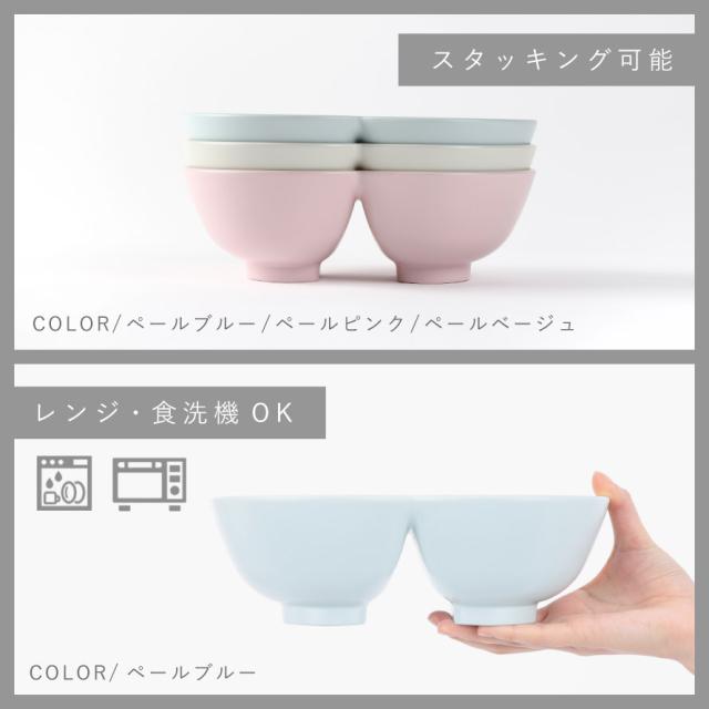 柔らかなペールカラー。少しくすんだ印象が、洗練されたモダンな印象のツイン丼。淡い色が派手すぎず、お料理の色が映えます。写真映えもしておしゃれなカフェのような食卓に。