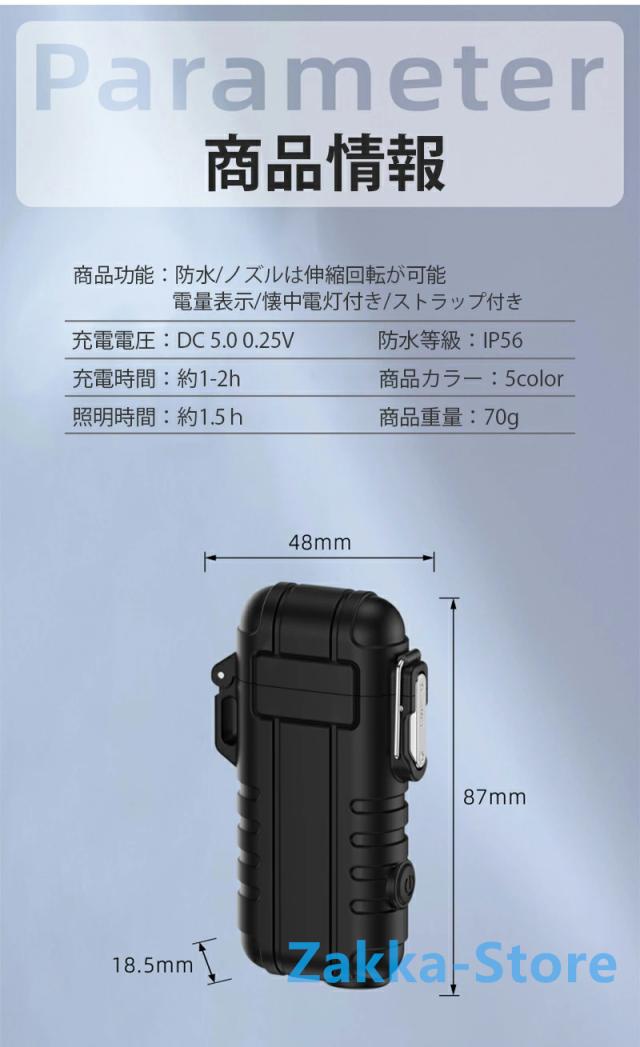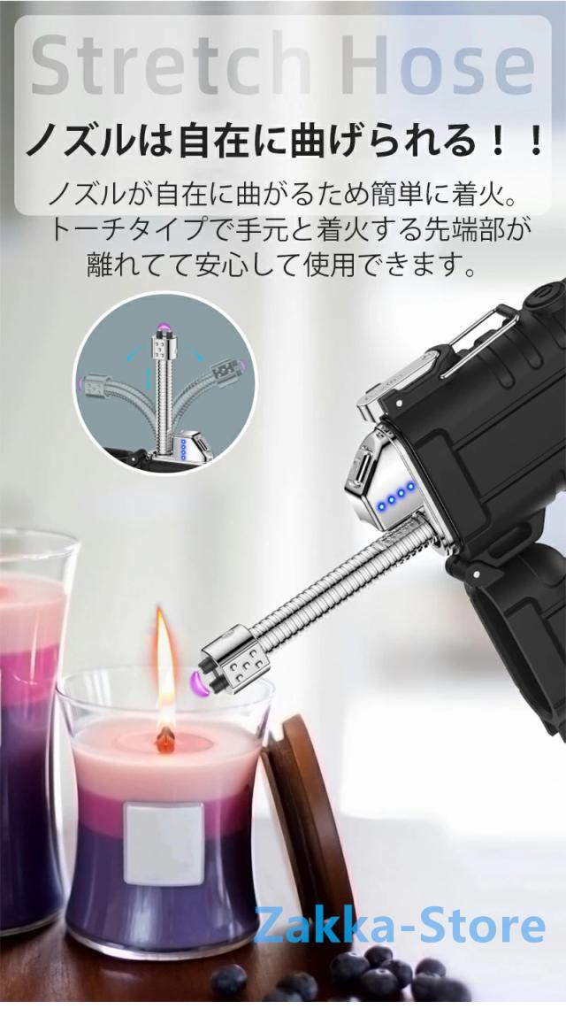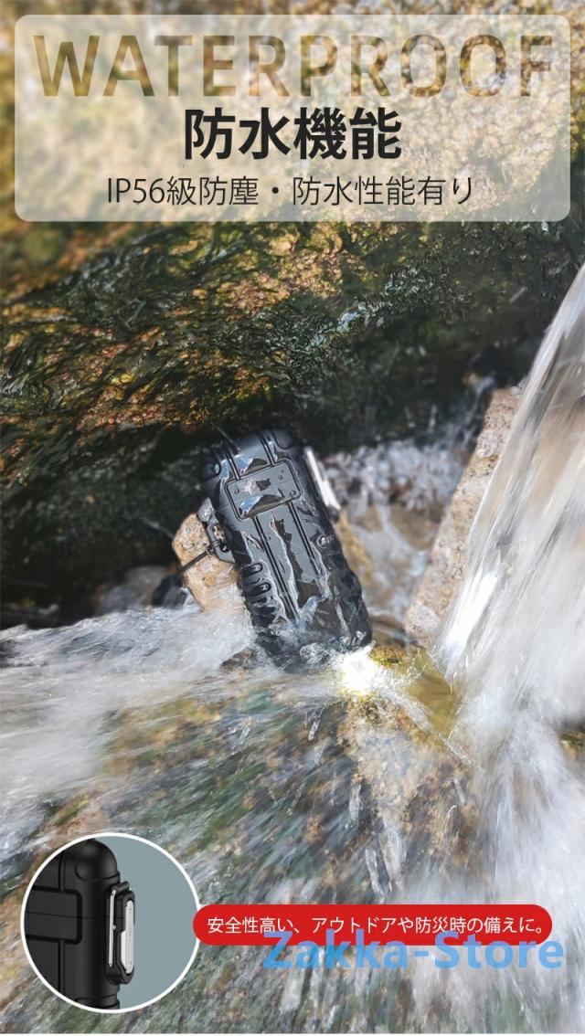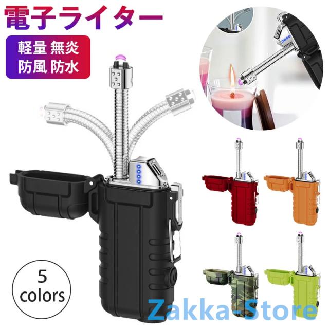 充電式電子ライター 懐中電灯機能 電量表示 ノズル曲げられる IP56防水仕様 プラズマ 無炎 防風 ダブルアークライター 軽量薄型 持ちやすい