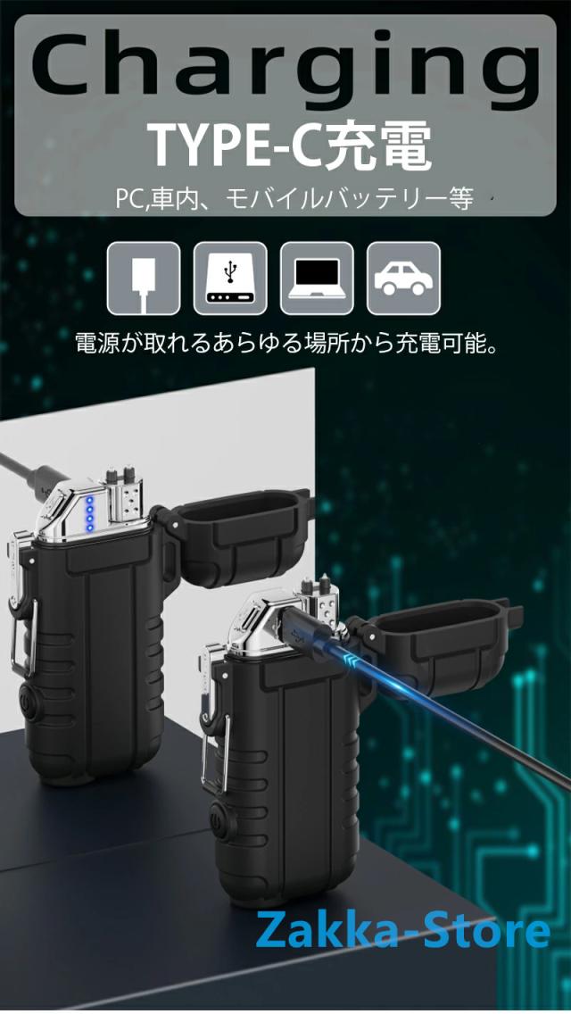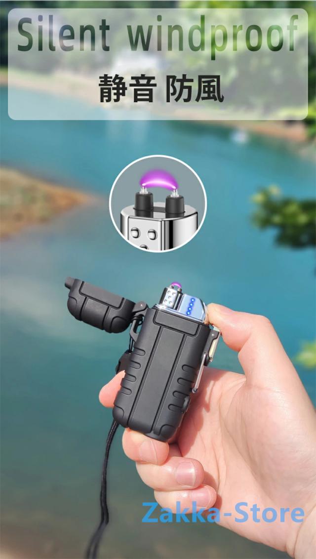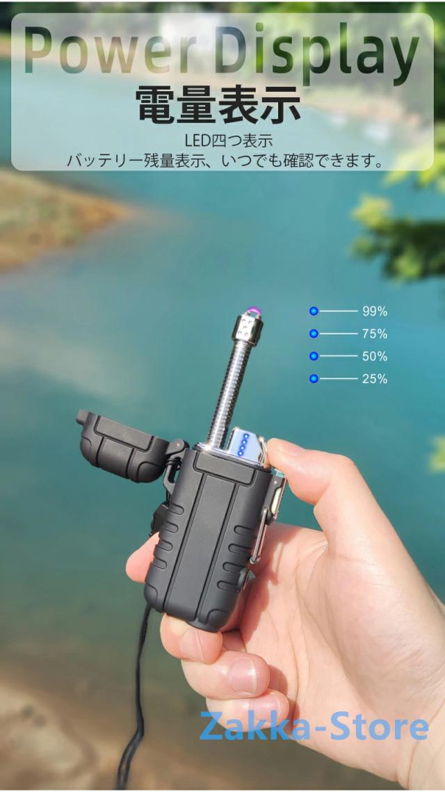 電子ライター USB充電式 懐中電灯機能 電量表示 ノズル曲げられる IP56防水仕様 プラズマ 無炎 防風 ダブルアークライター 軽量薄型 持ちやすい