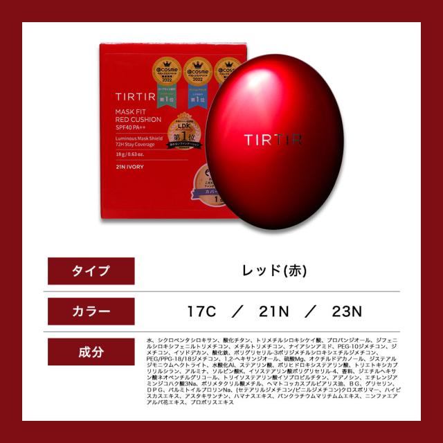 ティルティル TIRTIR マスクフィットレッドクッション 正規品 18g マスクフィットクッション マスクフィットオールカバークッション マスクフィットクールサンクッション カバー持続 うるツヤ肌 クッションファンデーション UVカット 美容液成分配合 韓国コスメ
