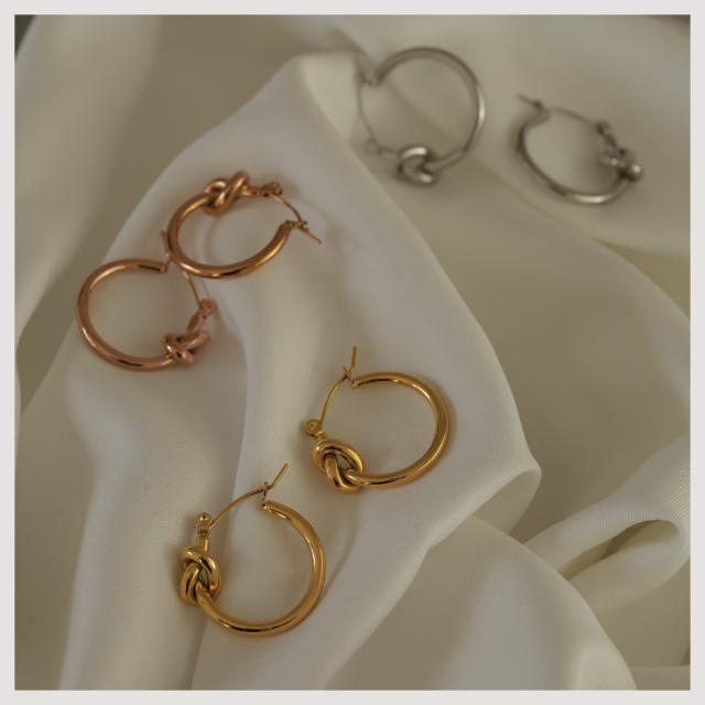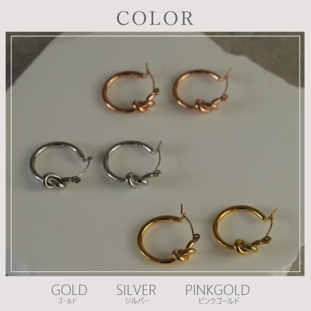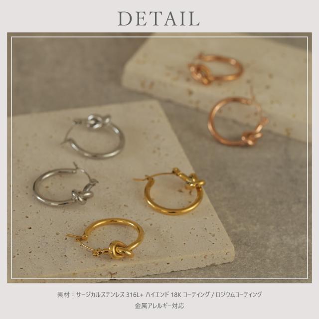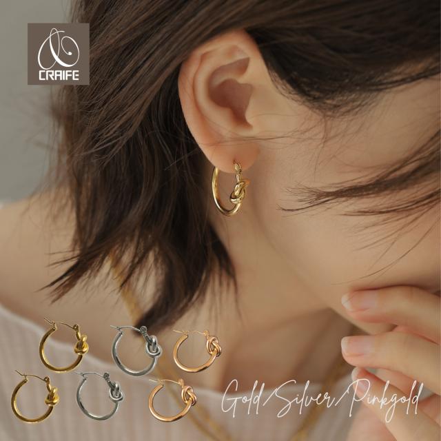 ピアス 金属アレルギー対応 サージカルステンレス 316L 18K ノット 結び目 フープピアス レディース 大人 モダン シンプル かわいい エレガント ジュエリー ゴールド シルバー ピンクゴールド 送料無料 プチプライス高見え CRAIFE