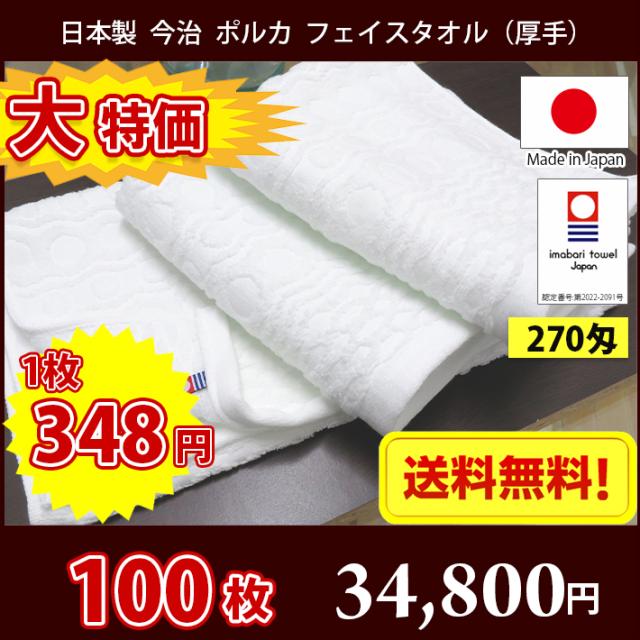 【送料無料】大特価!100枚セット 日本製 今治 270匁 ポルカ フェイスタオル 厚手 ホテル仕様 / 今治タオル フェイス まとめ買い ふっくら もっちり ホテルスタイル