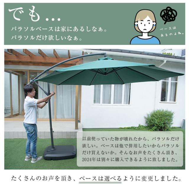【パラソル単体】ガーデンパラソル パラソル単体 大型 ハンキング ベース付き 大きい 折りたたみ おすすめ 安い お洒落 貯水型ベース アウトドア 日よけ ベランダ 庭 吊り下げ型 BBQ 土台付き キャンプ UVカット 防水 紫外線 屋外用 グリーン ブラウン ベージュ 翌日配送