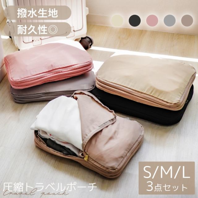 圧縮トラベルポーチ セット S M L 3点セット 圧縮 圧縮袋 トラベルポーチ 旅行圧縮ポーチ 撥水 収納 衣類 収納ポーチ 圧縮ポーチ 圧縮バッグ 軽量 出張 旅行 ファスナー おしゃれ シンプル トラベル ポーチ コンパクト スーツケース 送料無料