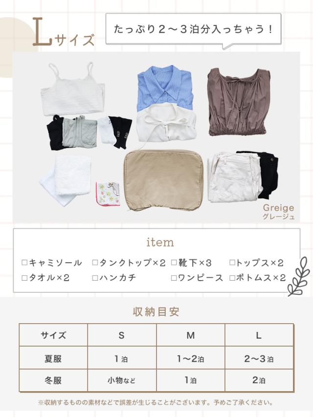 | 内容 | 圧縮トラベルポーチS/M/L3点セット Sサイズ × 1 Mサイズ × 1 Lサイズ × 1 |