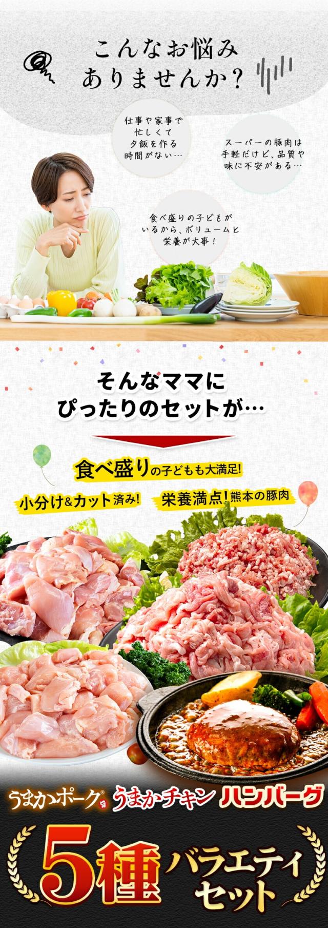 総重量1,520g! お肉5種 バラエティセット 肉 豚肉 鶏肉 ハンバーグ 5種 福袋 切り落とし 豚ミンチ 国産 豚 ミンチ うまかチキン モモ肉 むね肉 《1-5営業日以内に発送(土日祝除く)》【※北海道、沖縄・離島は別途送料】trend_niku |