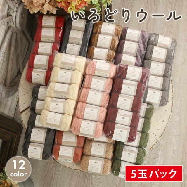 毛糸 まとめ買い 5玉 ごしょう産業 いろどりウール 日本製 毛糸 セール 毛 ウール100% 秋冬毛糸 かぎ針 棒針 ニット 手編み 編み物 レディース 手芸 ハンドメイド 帽子 ベスト セーター ストール ショール