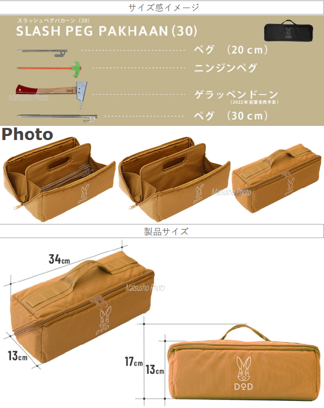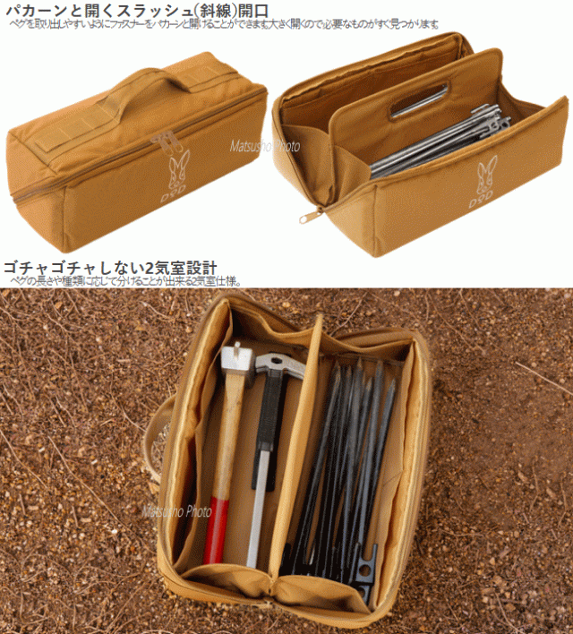 DOD バッグ ペグバッグ ペグケース 収納バッグ ハンマー ロープ 道具一式 2気室設計 ポリエステル 撥水 防汚 アウトドア キャンプ スラッシュペグパカーン(30)BG1-959-CA キャメル