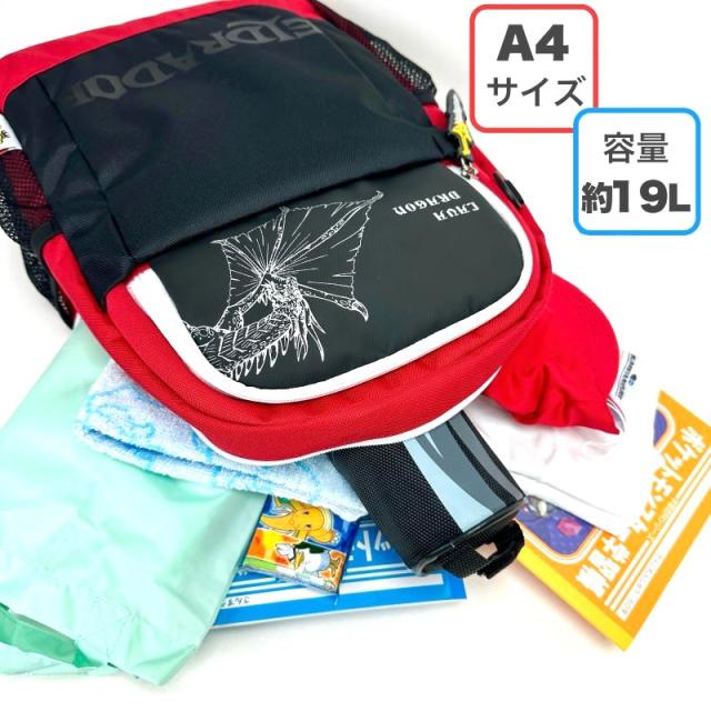 容量約19LでA4収納可能。お弁当箱や水筒、教科書や参考書など必要な物をしっかり収納。