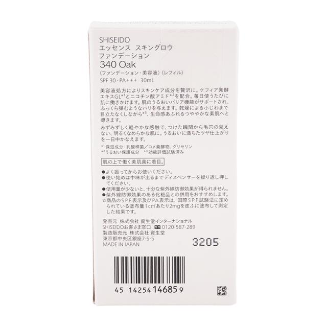 資生堂 SHISEIDO エッセンス スキングロウ ファンデーション レフィル 詰替え [340 Oak] 30mL SPF30 PA+++ 無香料 リキッド[ギフトラッピング対応]