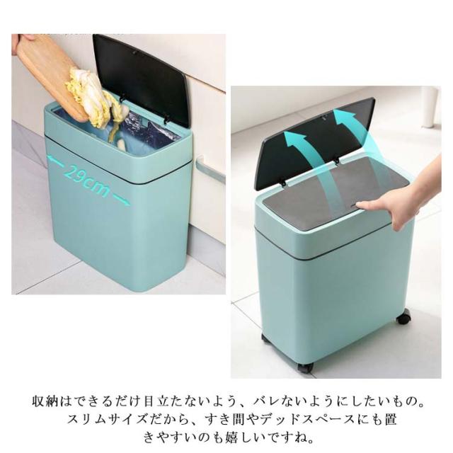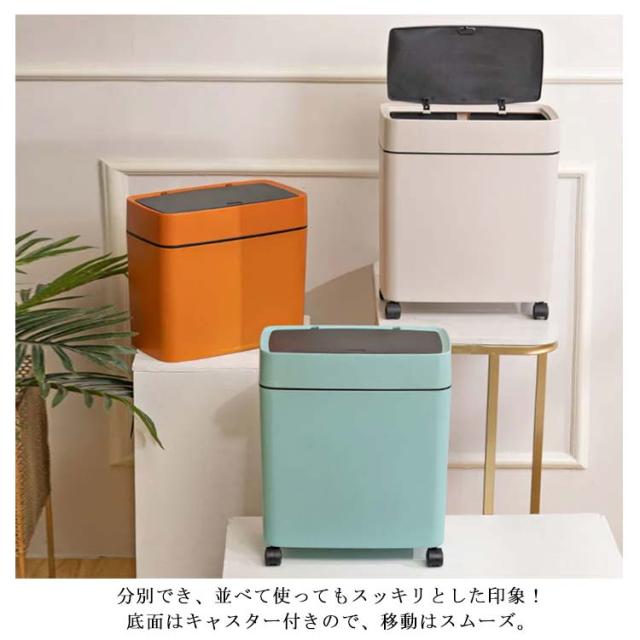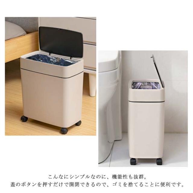 | 分別でき、並べて使ってもスッキリとした印象! 底面はキャスター付きので、移動はスムーズ。 こんなにシンプルなのに、機能性も抜群。 蓋のボタンを押すだけで開閉できるので、ゴミを捨てることに便利です。 ちょっとした隙間が統一感ある収納スペースに早変わり! ふた付きなので、小さなお子様やペットがいるご家庭のいたずら防止にも。 収納はできるだけ目立たないよう、バレないようにしたいもの。 スリムサイズだから、すき間やデッドスペースにも置きやすいのも嬉しいですね。 キッチン・リビング・クローゼット収納・納戸の収納棚・玄関収納・子供部屋など、色々なシーンで使える便利なキャスター付きのすき間ゴミ箱です。 | |