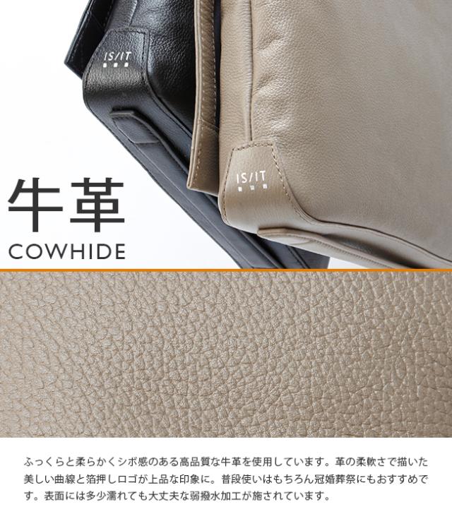 | オールレザー仕様の2WAYバッグ イズイットのオールレザー仕様2WAYバッグは、クラッチバッグとしてもショルダーバッグとしてもお使いいただける優れたアイテムです。 高品質な牛革を使用し、表面には弱撥水加工が施されています。シンプルでありながらスタイリッシュなデザインは、様々な服装にマッチし、普段使いはもちろん冠婚葬祭にもおすすめです。 シーンに合わせて使い分け 着脱可能なショルダーベルトと底面のハンドルを利用することで、シーンに合わせて使い分けが可能です。ショルダーバッグとしても、ハンドルを持ってクラッチバッグとしてもお使いいただけます。 普段使いからフォーマルな場面まで、多岐にわたるシーンでお使いいただけます。 B5ファイルが収納可能 メインルームは広く、B5ファイルが丁度収まり、折り畳み傘も横向きに入るサイズ感になっています。その他にも長財布や小物類も十分な収納スペースがあります。豊富なポケットが用意されているため、小物類もすっきりと整理して収納できます。 また、フォーマルなシーンでの必需品である袱紗などもきちんと収めることができます。使い勝手と収納力を兼ね備えた、洗練されたバッグです。 |
