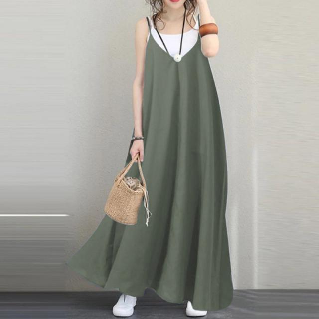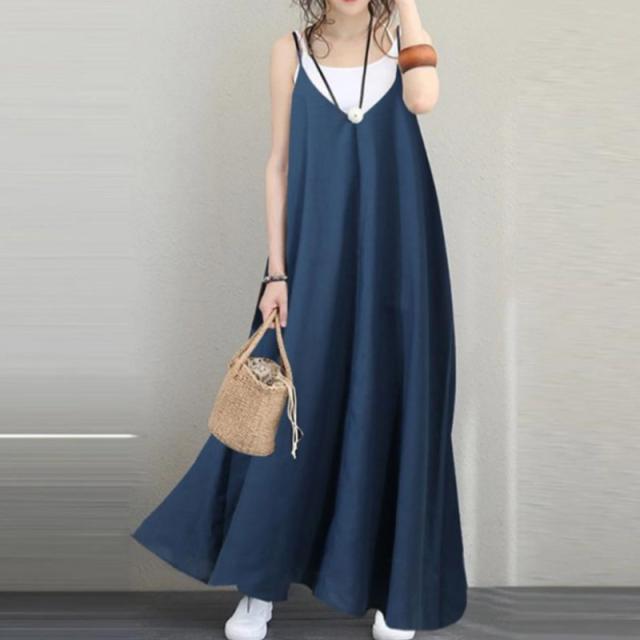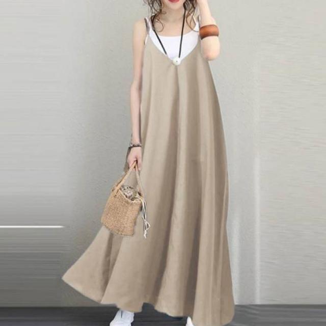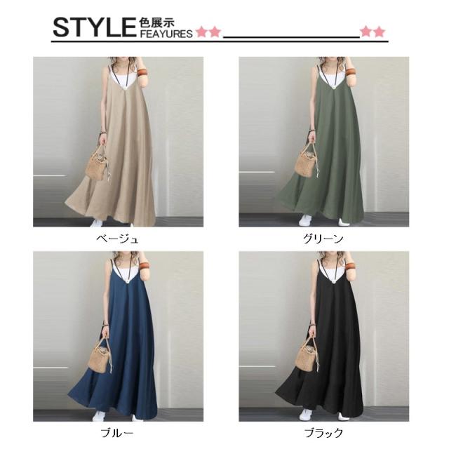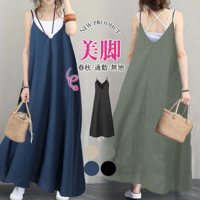 レディース 夏 春 キャミワンピ ロングワンピース ジャンパースカート Aラインワンピース ゆったり サロペットワンピース 無地