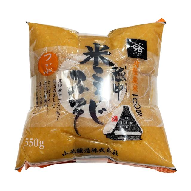 | 商品説明 | 山本醸造の米こうじ味噌は、富山県の良質な水で仕込み、北陸産米100%、国産塩100%を使用しています。 米こうじをふんだんに使用した甘い香りが特徴で、こうじの食感が残る粒タイプの味噌です。 山元醸造の米こうじ味噌は、地元北陸ではおなじみの主力商品で、「越中みそ」の代表格として知られています。 |