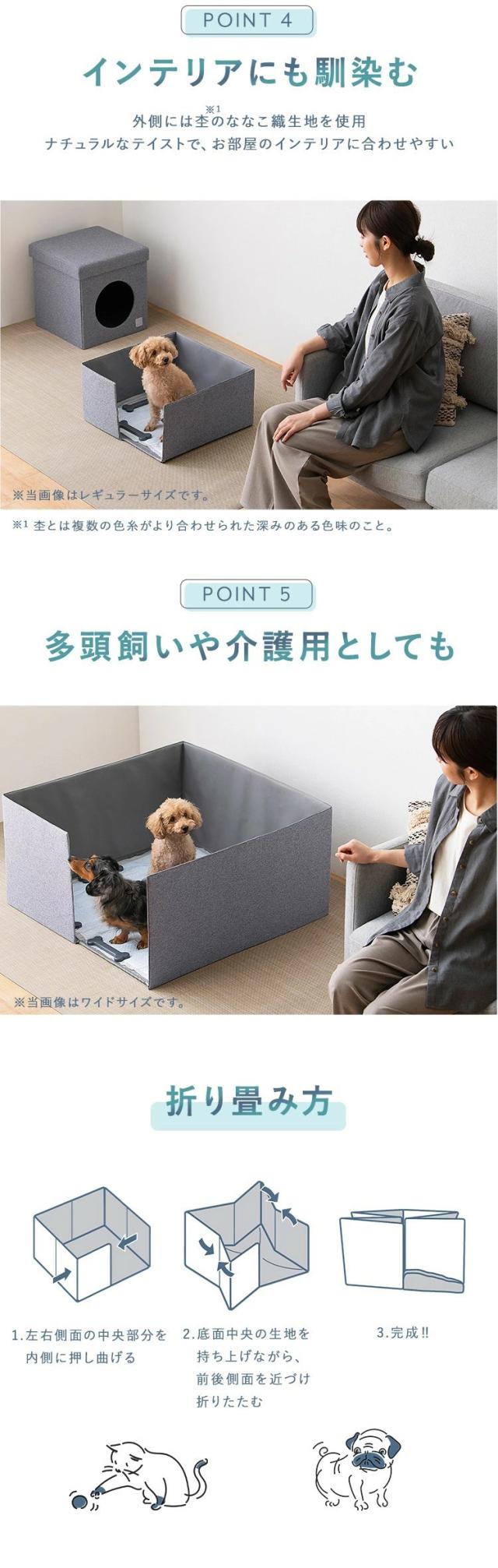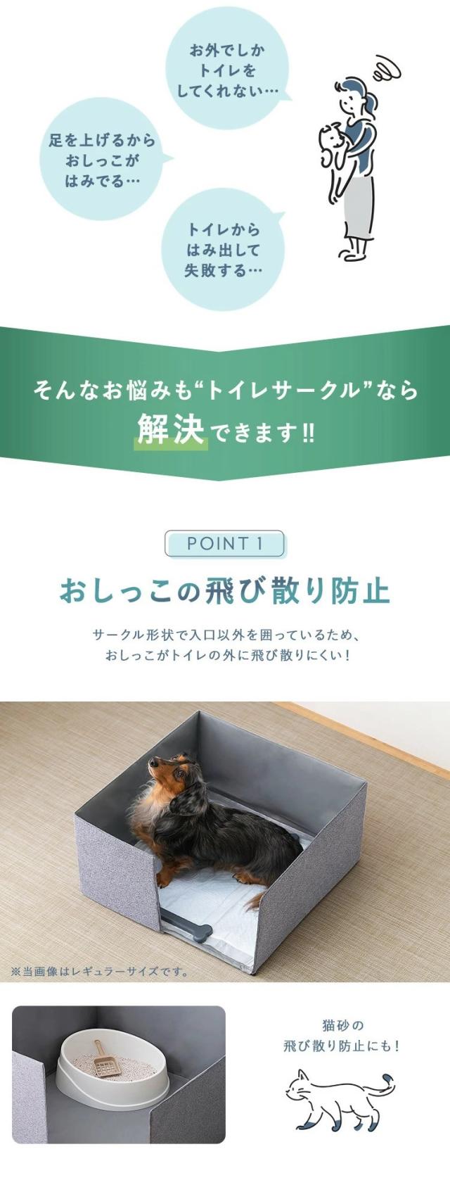 ペットのトイレのお悩みを解決するファブリック製のトイレサークルです。