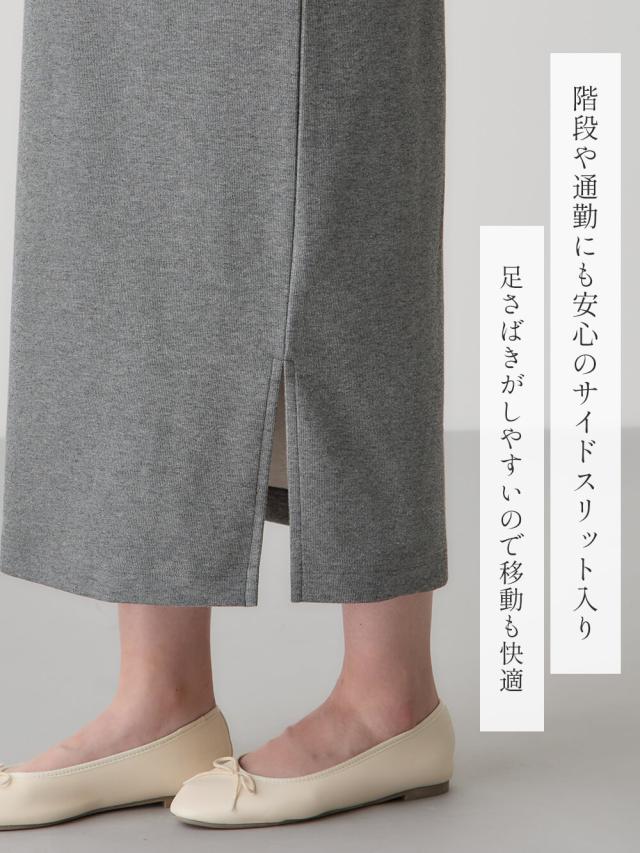 細見えを叶えるシルエットとシンプルデザインで大人気のナロースカートが綿混素材に。さらりとした肌触りが気持ちよく、Tシャツなどを合わせるだけで大人のカジュアルスタイルが完成します。すっきりとした細身のシルエットですが、カットソー素材なので伸縮性があり動きやすいです。