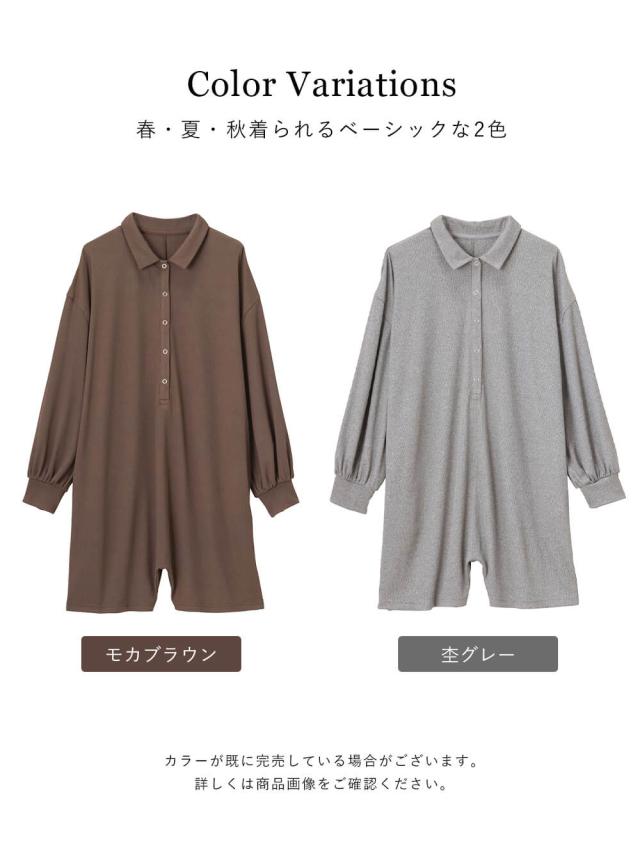 ルームウェアとしても着まわしたくなるオールインワンデザインのパジャマです。パフっとしたボリュームスリーブとすっきりとしたハーフパンツでメリハリ感を演出。身幅はゆったりしていて、伸縮性の高い素材なのでマタニティ期も安心です。