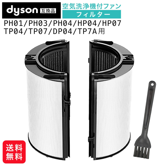 ダイソン(dyson)互換 一体型リサイクルグラスHEPA・活性炭フィルター(交換用フィルター)PH04 PH03 HP07 HP09 TP07 TP7A PH01 HP04 TP04 DP04 などに対応 お掃除ブラシ付き 非純正 Combiフィルター 空気清浄機フィルター コンビフィルター