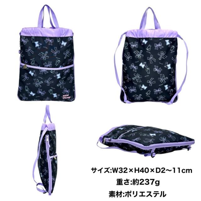 【商品レビュー記入で+5%】ナイスクラップ ナップサック NICE CLAUP 拡張 通園 通学 B5 A4 子ども 子供 女の子 女子 幼稚園 保育園 小学生 低学年 学童 かわいい 年少 年中 年長 遠足 キッズ ジュニア かばん キッズバッグ NC386 塾 通学バッグ 女児 キッズ用 子供用