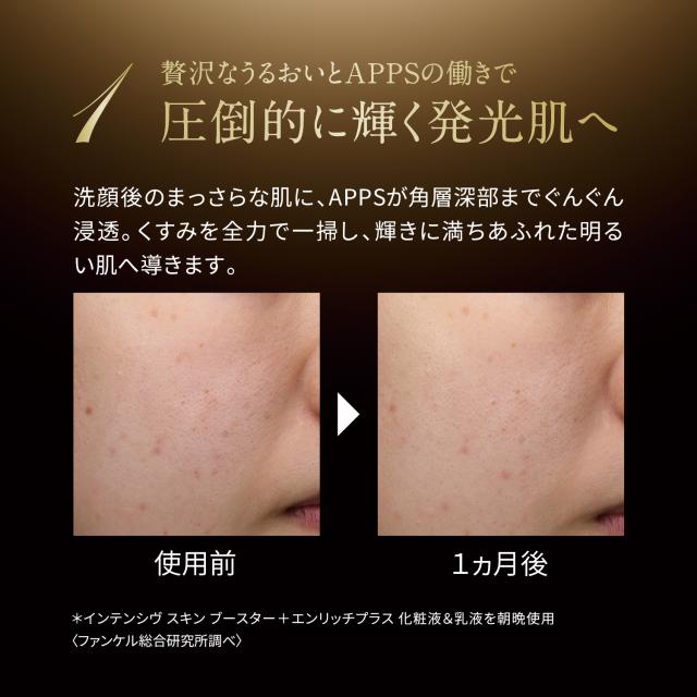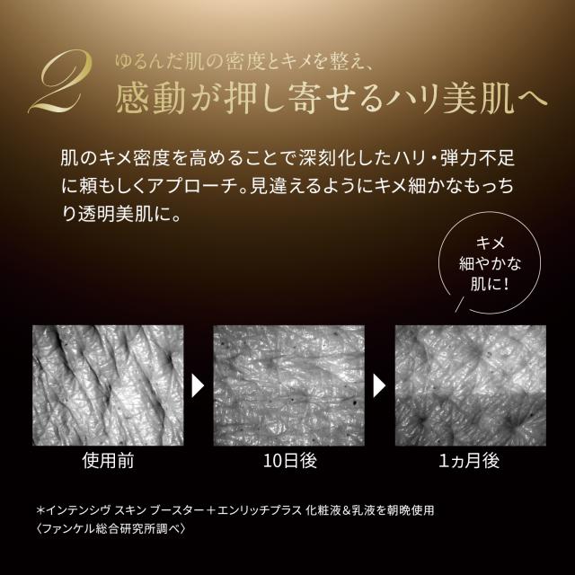 クレンジング ⇒ 洗顔 ⇒ インテンシヴ スキン ブースター ⇒ 化粧液 ⇒ (美容液) ⇒ 乳液