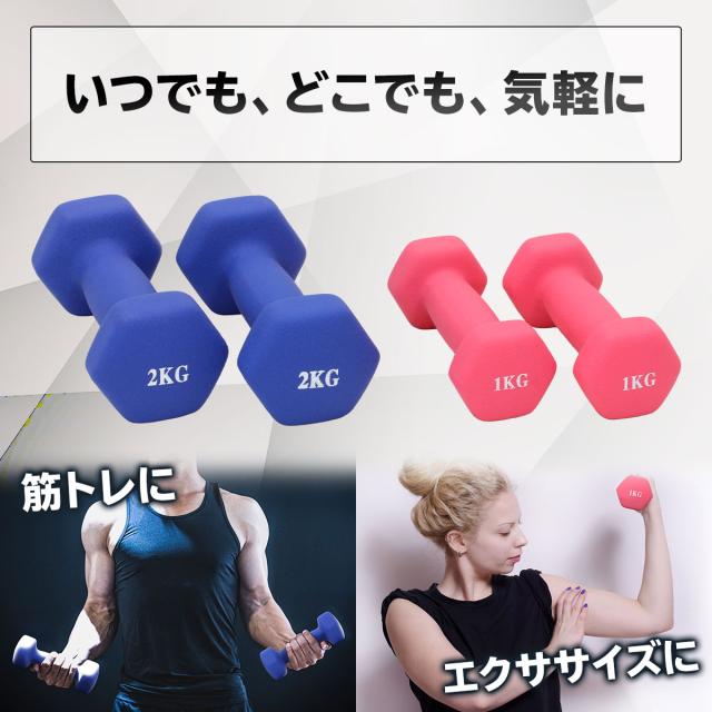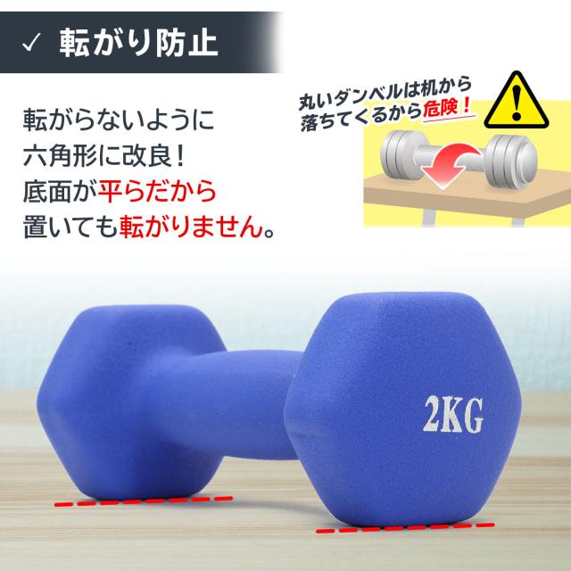 コーティングしてあるから持ちやすい!冷たくない!丸くないから転がらない!いつでも気軽に使えるカラーダンベル2個セット