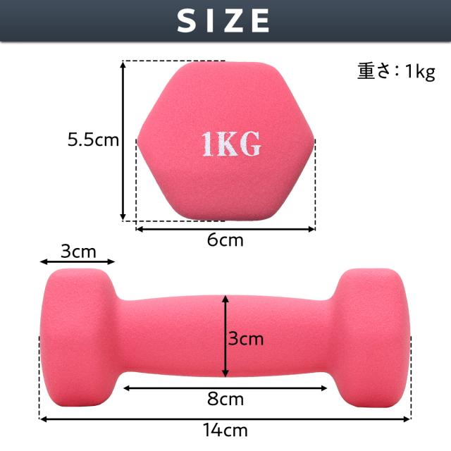 ダンベル 1kg 2個 セット カラー トレーニング 筋トレ 初心者 エクササイズ ダイエット 鉄アレイ PVC コーティング 筋トレグッズ コンパクト おしゃれ かわいい 自宅 ジム 持ちやすい ピンク