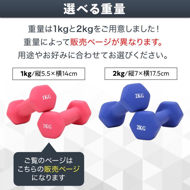 【エクササイズに嬉しい2個セット】両手で持ってバランスよく負荷として、スキマ時間に使えるように2ヶ所に置いて…など、ダンベルの嬉しい2個セットになります。かわいいカラーでやる気アップ!