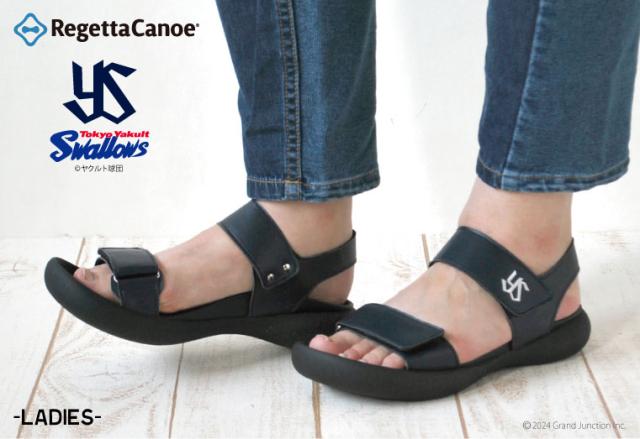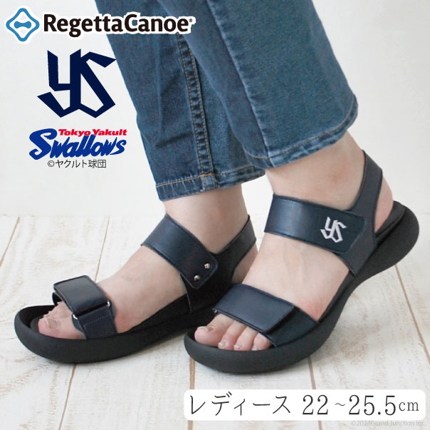 送料無料 リゲッタ カヌー レディース サンダル 東京 ヤクルト スワローズ コラボ ベルクロ ストラップ/BCFD10YS /lvw615 プロ野球 応援 グッズ 日本製