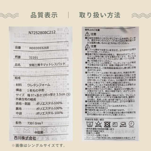 [ keyword | 当社限定 西川 マットレストッパー シングル 低反発 敷布団 97×195cm 厚さ3.5cm 圧縮梱包 低反発マットレストッパー 寝返り 通気性 敷き布団 腰痛 低反発マットレス マットレストッパー トッパー ウレタンマットレス ]