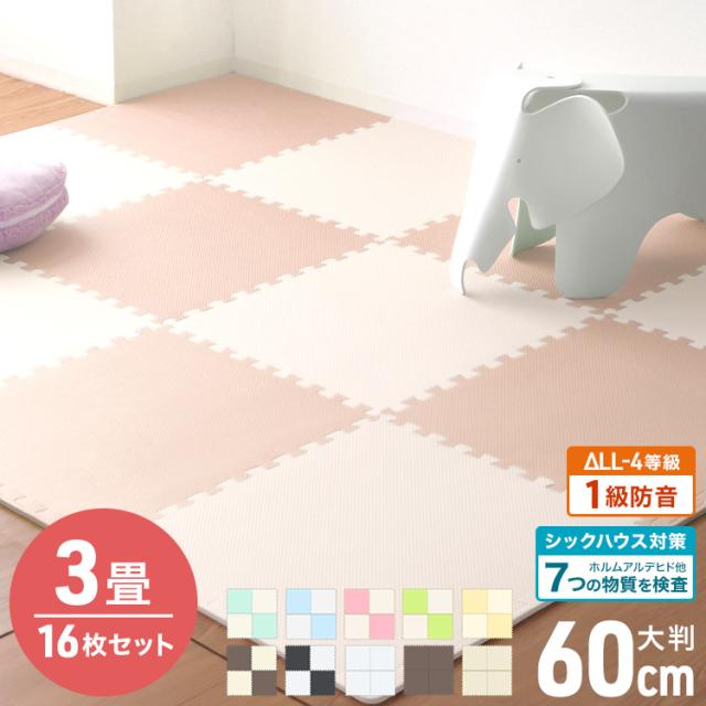 ジョイントマット 大判 3畳 16枚 60cm ノンホル サイドパーツ付 床暖房対応 おしゃれ PE ジョイント 赤ちゃん フロアマット プレイマット 防音 断熱 北欧 キッズマット キッズ マット ベビーマット 送料無料 洗える カーペット ベビー ペット ペット用
