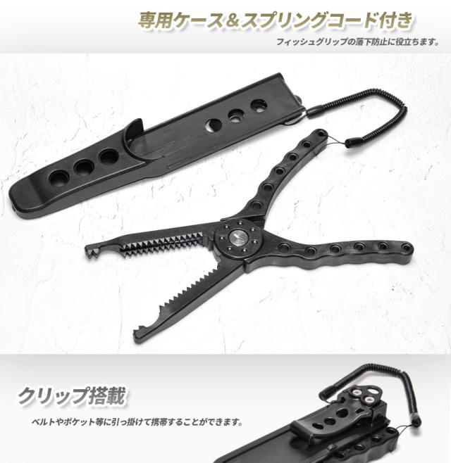 フィッシュ グリップ プライヤー 魚 つかみ 伸縮 スプリング コード ケース 付き 釣り 道具 落下防止 フィッシング ツール