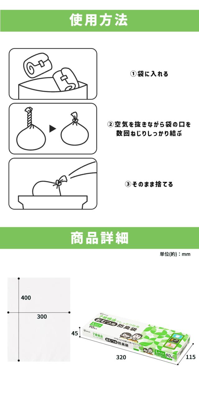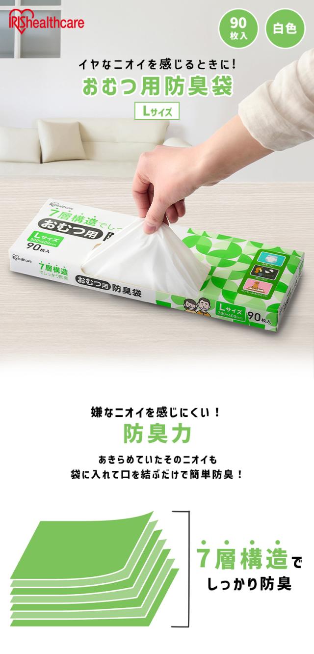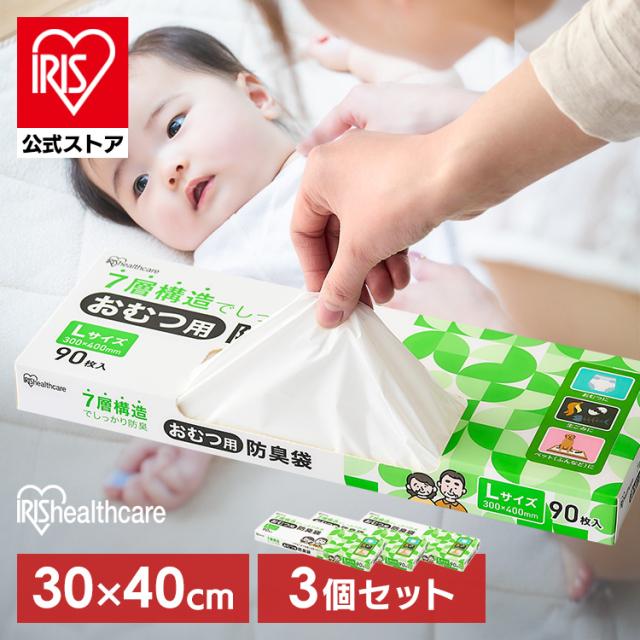 【3個セット】 防臭袋 おむつ用ごみ袋 おむつ袋 Lサイズ 270枚 90枚入×3個 7層構造 臭わない 匂わない 匂い対策 大人 高齢者 介護 赤ちゃん ベビー ペット 犬 猫 生ゴミ お出かけ 散歩 うんち オムツ袋 まとめ買い 大容量 アイリスオーヤマ DBB-L90 *