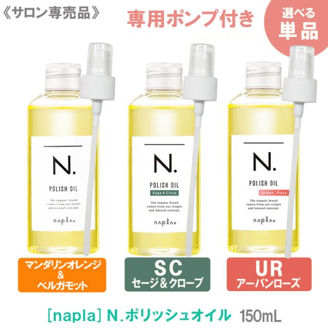送料無料【えらべる単品/専用ポンプ付き150ml】[ナプラ]N. エヌドット ポリッシュオイル(マンダリンオレンジ&ベルガモットの香り)SC(セージ&クローブの香り)/ UR(アーバンローズの香り) ミニサイズ 150mL スタイリング