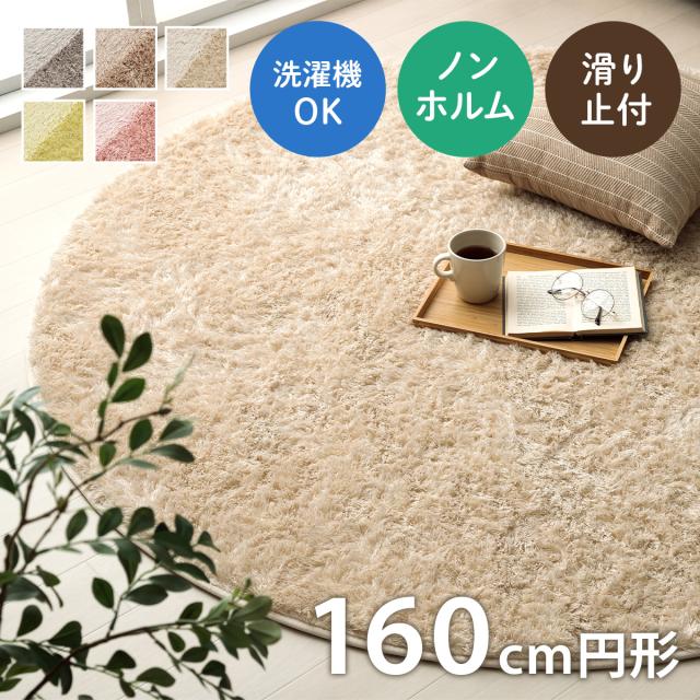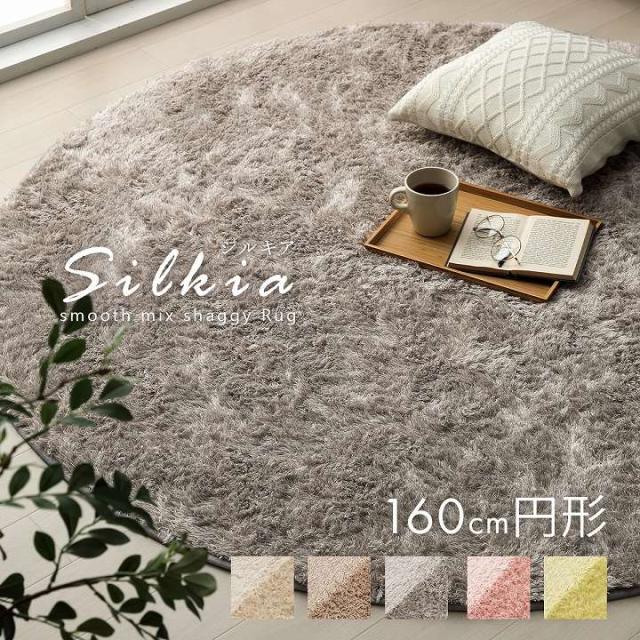 ラグ 洗える シャギーラグ 円形 北欧 ラグマット 「 シルキア 」160cm円形 シャギー カーペット 丸 丸型 小さめ 滑り止め ホットカーペット 床暖房対応 丸洗い 冬用 夏用 おしゃれ 新生活