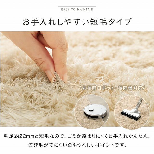 | ■ 2色のミックスパイルを採用し、表情豊かなラグに仕上げました。毛の向きによって色味が変化するのもシャギーラグの魅力です。 ■ 毛足の長さは約22mmのなめらかなタッチ感。夏は通気性が高くサラッと、冬は空気を取り込み暖かく、オールシーズンご使用いただけます。 ■ 中材にはウレタンフォーム9mmを使用し、ふっくらとしたほどよいクッション性があります。 ■ 裏面はフローリングにやさしい不織布にすべり止め加工を施しています。ラグがズレにくく、小さなお子様やペットがいるご家庭にも安心です。 ■ ホルムアルデヒド試験の乳幼児用品基準をクリア。小さなお子様にも安心して使えるノンホルムアルデヒド製品です。 ■ ホットカーペット・床暖房対応。 ■ 洗濯機で丸洗いOK。手軽に洗えて清潔を保てます。 ※使い始めは製造上発生する繊維(遊び毛)が出る可能性がございます。ご使用前に掃除機でやさしく吸い取ってください。 ※ 滑らかな肌触りが特徴の製品です。ご使用中の転倒にご注意ください。 |
