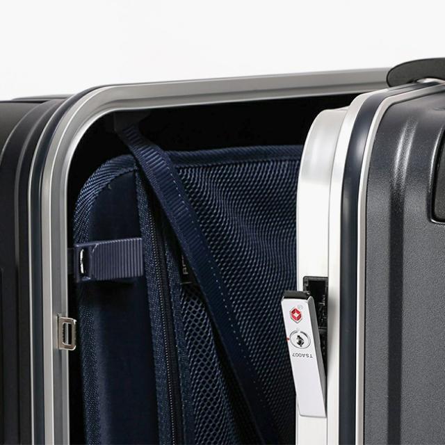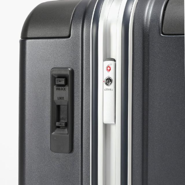 | 細部まで機能をブラッシュアップした次世代のスタンダードモデル。 荷物の紛失時に発見率が向上するトラベルセントリーIDを装備しました。本体側面に設置されたスライドスイッチで簡単にロック・アンロックが可能な HINOMOTO製ストッパー付き静音キャスター・サイレントラン(SILENT RUN)搭載。 |