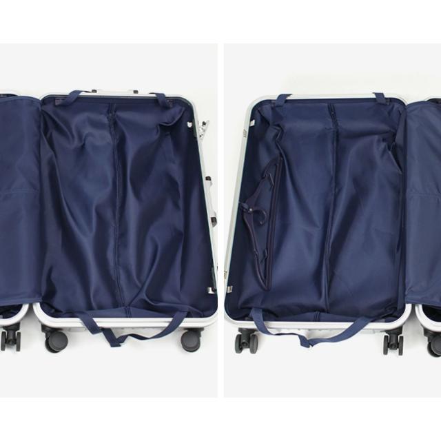 両面仕切り&荷崩れ防止のクロスベルトを備え、ジャケット等の収納に便利なハンガーも装備。