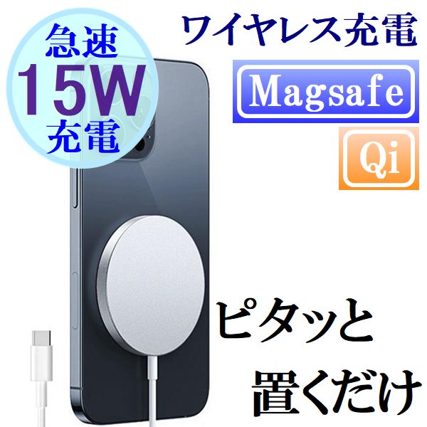 ワイヤレス充電器 急速充電 15W iPhone android スマホ MagSafe ワイヤレス 充電器 軽量 ネコポス送料無料
