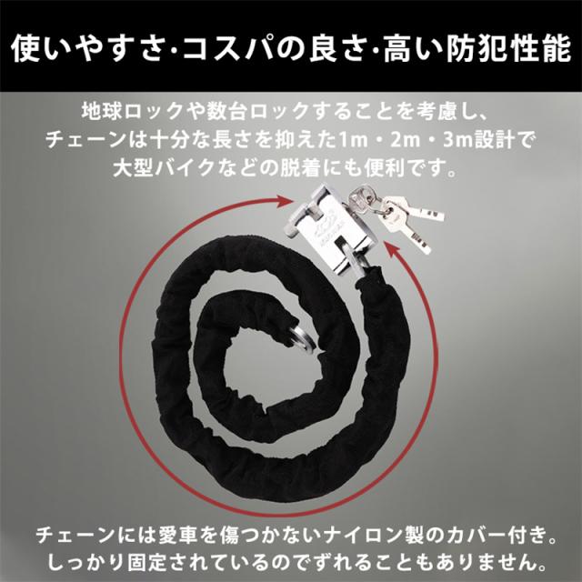 バイクロックチェーン 1m 2m 3m 自転車 バイク 鍵 ロック チェーン ワイヤー 長い ロックチェーン 極太 いたずら防止