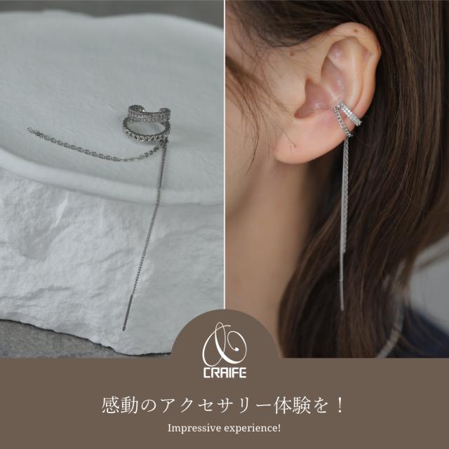 カテゴリ:イヤーカフ イヤカフ イヤーカフス イヤリング 金属アレルギー対応 金アレ対応 ロジウムコーティング ニッケルフリー ロングチェーン 個性的 プレゼント ギフト 大人 スタイリッシュ かわいい モダン カジュアル シンプル ラグジュアリー エレガント 普段使い デイリー パーティー オフィス 仕事 卒業式 卒園式 入学式 入園式 セレモニー 20代 30代40代 50代 大人女子 セレブ プチプライス ジュエリー シルバー 送料無料 プチプライス高見え CRAIFE クライフ