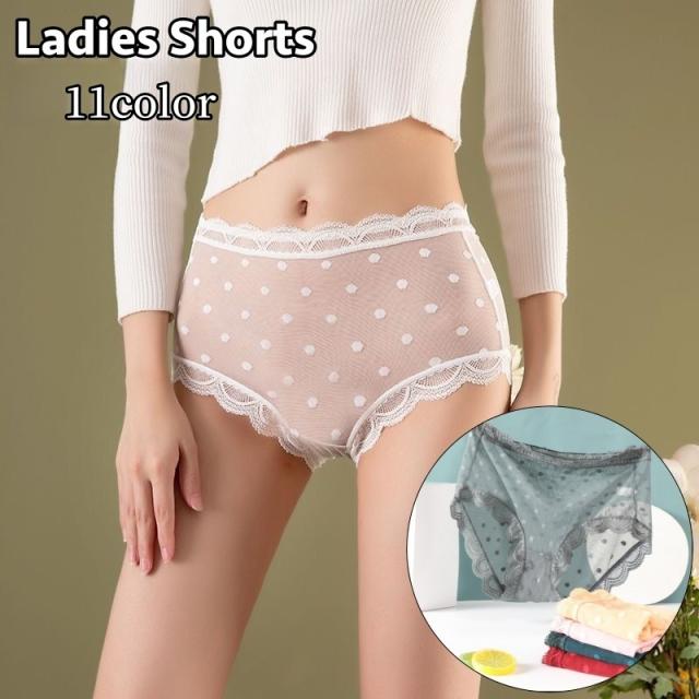 スタンダードショーツ ショーツ ハイウエスト レディース 女性 インナー 下着 レース 透け感 シースルー ドット柄 お洒落 上