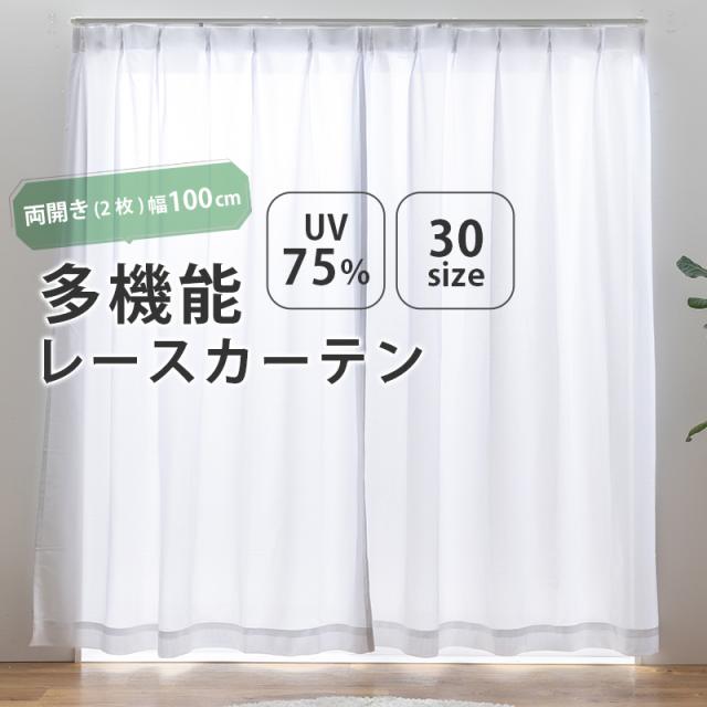 UVカット レースカーテン 幅100cm(2枚組)丈103〜198cm UVカット率75%以上 断熱 保温 シンプル ウォッシャブル 洗濯 既製 おしゃれ 新生活 サーブル UVカット レースカーテン 断熱 保温 ウォッシャブル 洗濯